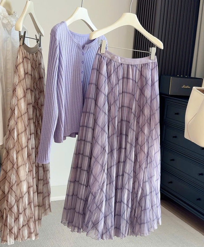 Váy kẻ caro hồng bg 1203